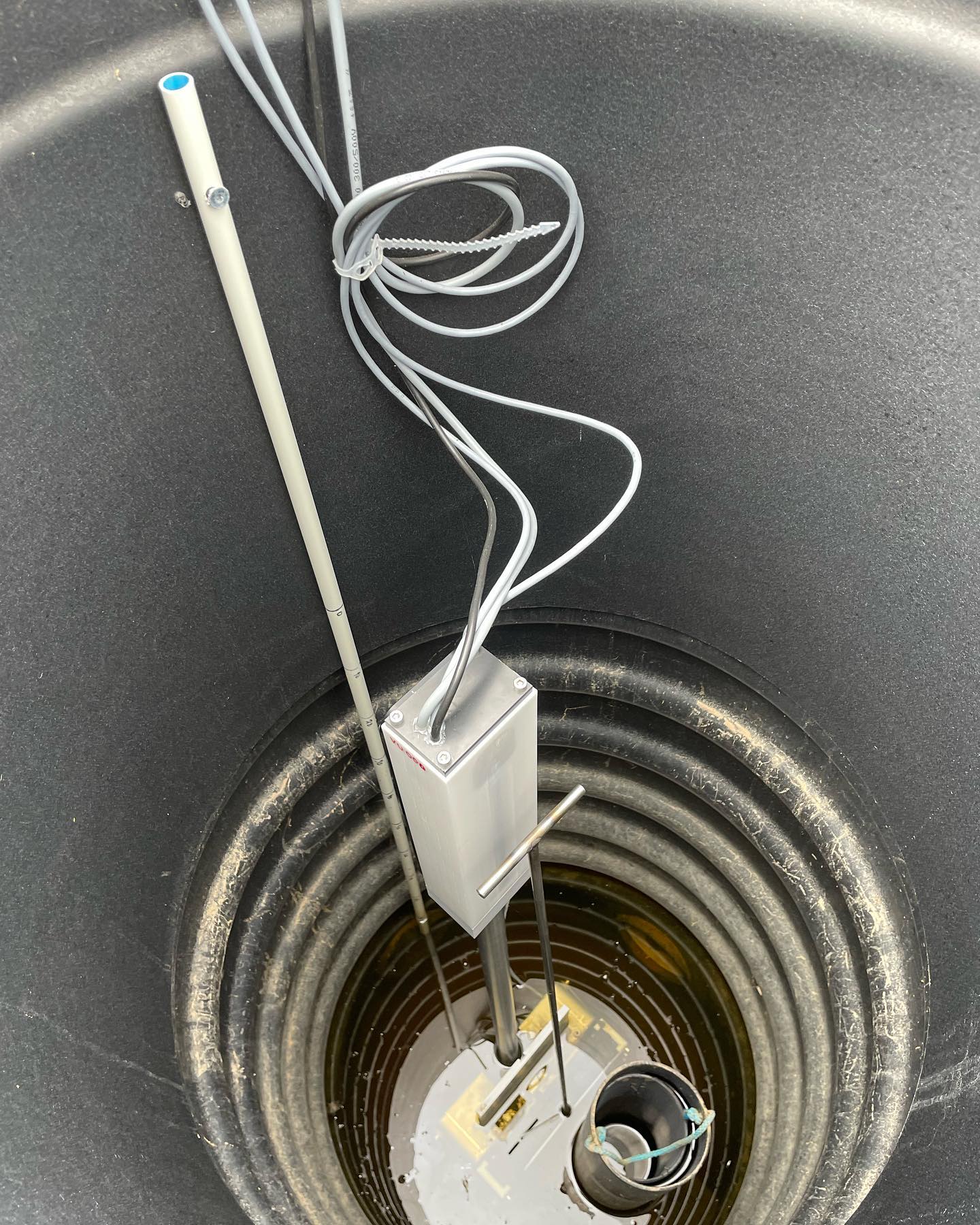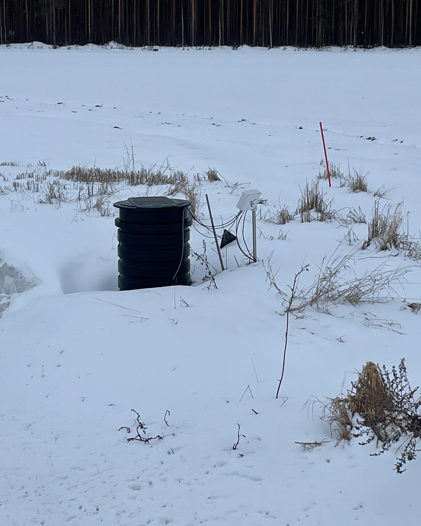 Auringonvalo on ladannut jo pilottikaivon akut ja tietoa maaperästä on alkanut kertymään. Pohjavesi kaivon lähettyvillä on 130 cm syvyydessä maan pinnasta. Lunta on tällä hetkellä eniten koko talvena! Säätökaivon etähallittavan venttiilin talvenkestokykyä ei päästä vielä testaamaan, sillä kaivoveden pinnassa on noin sentin paksuinen jää.