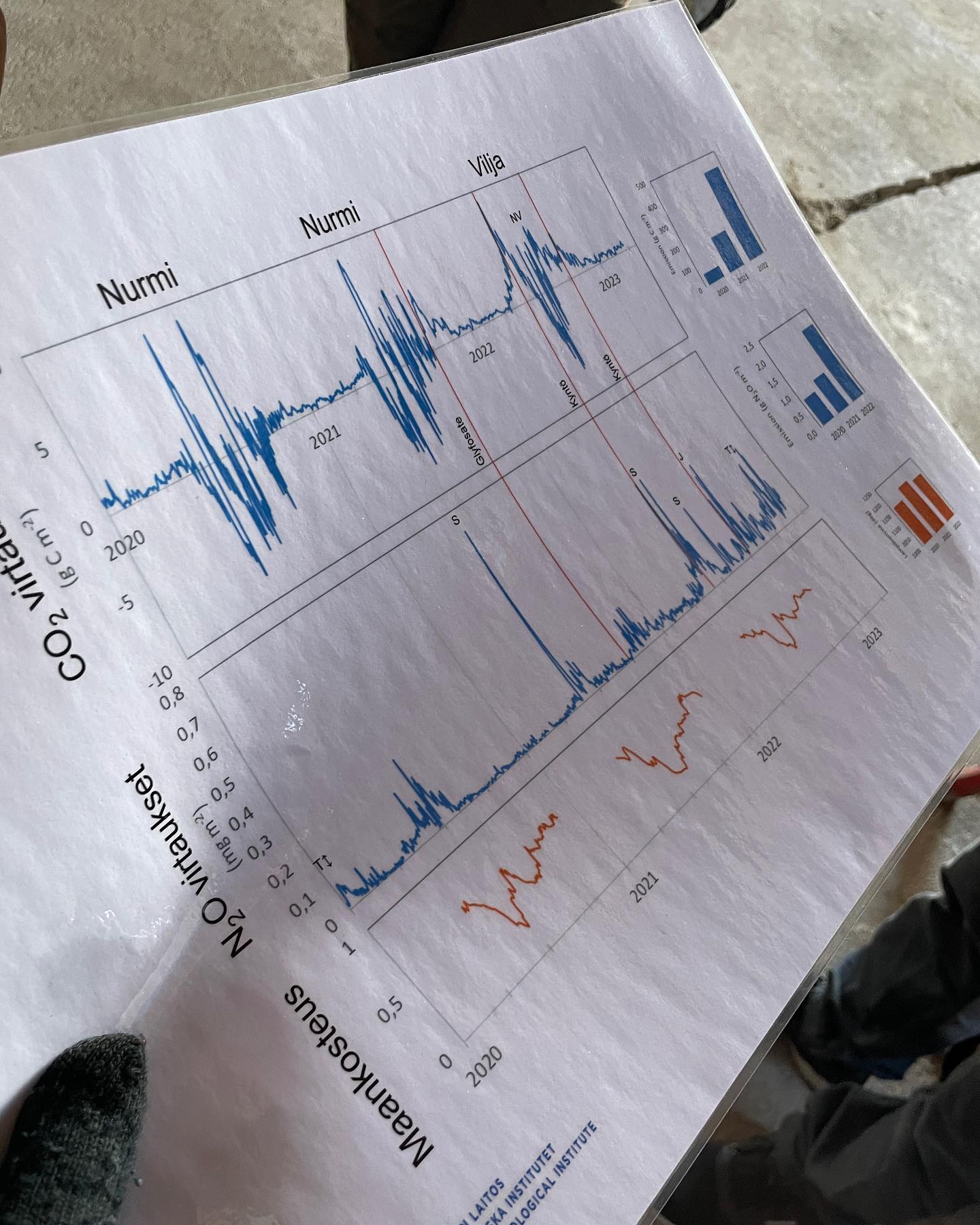 Kesällä metaania haihtuu erityisesti sateen jälkeen, varsinkin jos sadetta edeltää kuivat olosuhteet, Ilmatieteen laitoksen vanhempi tutkija Liisa Kulmala totesi Luke Ruukin pellonpiennarpäivässä. NorPeat -tutkimuskentältä on mitattu turvepellon kasvihuonekaasupäästöjä kolmen kasvukauden aikana. Talvisin kaasujen muodostuminen on ollut normaaleissa pakkas-ja lumitilanteissa vähäistä. Mikrobit kyllä toimivat vielä pienillä pakkasasteilla, Kulmala kertoo. Tämän vuoden tammikuussa, kun sää lauhtui runsaasti, mitattiin kentällä kasvihuonekaasupäästöjä muita vuosia enemmän. Nurmivuosina kasvusto on toiminut hiilinieluna heti keväästä asti. Niittojen jälkeen on muodostunut hiilidioksidi ja metaanivuot. Keväällä, kun maa on ollut viljanviljelyvuonna paljas, on hiilidioksidia vapautunut ilmakehään heti kevään lämmettyä.